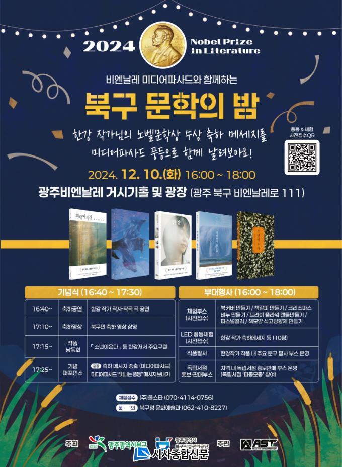 28ÀÏ ºÏ±¸¿¡ µû¸£¸é ´Ù°¡¿À´Â ¡®ÇѰ ÀÛ°¡ ³ëº§¹®Çлó ½Ã»ó½Ä¡¯À» ±â³äÇÏ¿© ¿À´Â 12¿ù 10ÀÏ ¿ÀÈÄ 4½Ã ±¤ÁÖºñ¿£³¯·¹ °Å½Ã±âȦ°ú ºñ¿£³¯·¹ ±¤Àå¿¡¼ ¡®¹Ìµð¾îÆÄ»çµå¿Í ÇÔ²²ÇÏ´Â ºÏ±¸ ¹®ÇÐÀÇ ¹ã¡¯ Çà»ç°¡ °³ÃֵȴÙ.