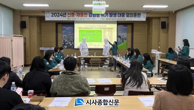 ½Ã º¸°Ç¼Ò´Â Áö³ 11¿ù 29ÀÏ º¸°Ç±³À°½Ç¿¡¼ º¸°Ç¼Ò ¹× Áö¼Ò, Áø·á¼Ò Á÷¿øÀ» ´ë»óÀ¸·Î ¡®2024³â ½ÅÁ¾¡¤ÀçÃâÇö °¨¿°º´ À§±â ¹ß»ý ´ëÀÀ ¸ðÀÇÈÆ·Ã¡¯À» ÁøÇàÇß´Ù.