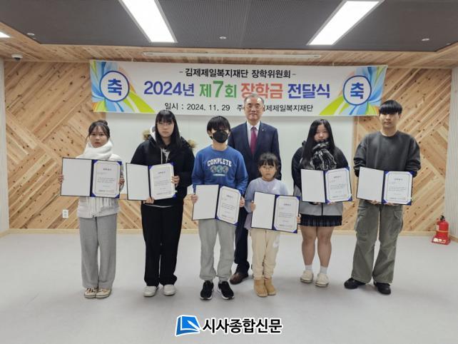 [½Ã»çÁ¾ÇսŹ® = ¿À½ÂÅà ±âÀÚ] ±èÁ¦½Ã(½ÃÀå Á¤¼ºÁÖ)´Â »çȸº¹Áö¹ýÀÎ ±èÁ¦Á¦ÀϺ¹ÁöÀç´Ü(´ëÇ¥ ÃÖÀç½Ä)ÀÌ Áö³´Þ 29ÀÏ, ±èÁ¦½Ã¿¡ °ÅÁÖÇÏ´Â Àú¼Òµæ Çлý 16¸í¿¡°Ô ÀåÇбÝÀ» Àü´ÞÇß´Ù°í ¹àÇû´Ù.