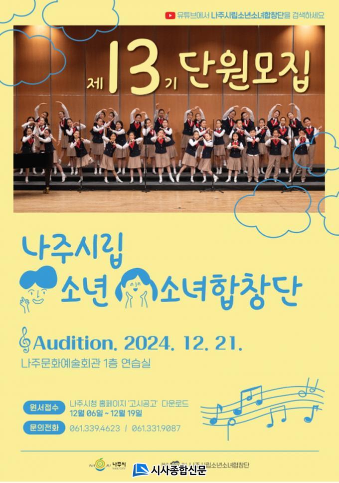 À̹ø ¸ðÁýÀº 12¿ù 6ÀϺÎÅÍ 12¿ù 19ÀϱîÁö ÁøÇàµÇ¸ç ³ªÁÖÀÇ ¾î¸°ÀÌ¿Í Ã»¼Ò³âµéÀÌ À½¾ÇÀû Àç´ÉÀ» ¹ßÈÖÇÏ°í ¿¹¼úÀû ¼ºÀåÀ» µµ¸ðÇÒ ¼ö ÀÖ´Â ±âȸ¸¦ Á¦°øÇÑ´Ù.