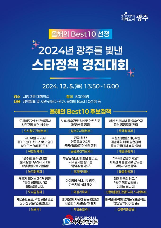 À̺´Ã¶ ±âȹÁ¶Á¤½ÇÀåÀº ¡°2024³â ±¤ÁÖ¸¦ ºû³½ ¿ÃÇØÀÇ º£½ºÆ®10 Á¤Ã¥Àº ¹«¾ùÀÌ µÉÁö ½Ã¹ÎÀÇ ³ÃÁ¤ÇÑ Æò°¡¸¦ ±â´Ù¸°´Ù¡±¸ç ¡°ÀÌ Çà»ç¸¦ ÅëÇØ ½Ã¹ÎÀÇ ÀǰßÀ» ¹Ý¿µÇÑ Á¤Ã¥ °³¹ß°ú ½ÃÇà¿¡ ´õ¿í ¹ÚÂ÷¸¦ °¡ÇÒ °èȹÀÌ´Ù¡±°í ¸»Çß´Ù.