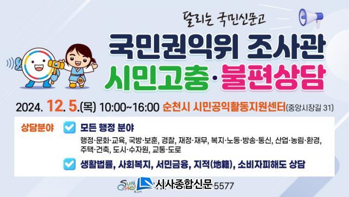 | ¼øÃµ½Ã, ±ÇÀÍÀ§ Á¶»ç°ü ½Ã¹Î°íÃæ ºÒÆí»ó´ã ¡°´Þ¸®´Â ±¹¹Î½Å¹®°í¡± ¿î¿µ |