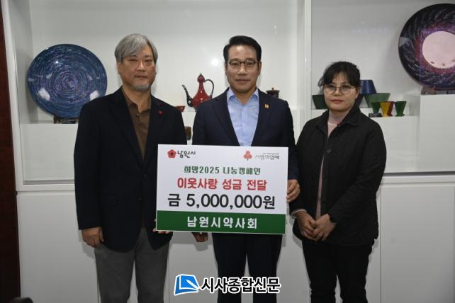 [½Ã»çÁ¾ÇսŹ® = ¿À½ÂÅà ±âÀÚ] ³²¿ø½Ã¾à»çȸ(ȸÀå ÀÓÁøÀÏ)´Â 4ÀÏ, Áö¿ª»çȸÀÇ º¹Áö »ç°¢Áö´ë¿¡ ³õÀÎ ÀÌ¿ôµéÀ» À§ÇØ ¡®Èñ¸Á 2025 ³ª´®Ä·ÆäÀΡ¯ ÀÌ¿ô»ç¶û ¼º±Ý 500¸¸¿øÀ» ³²¿ø½Ã¿¡ Àü´ÞÇß´Ù.