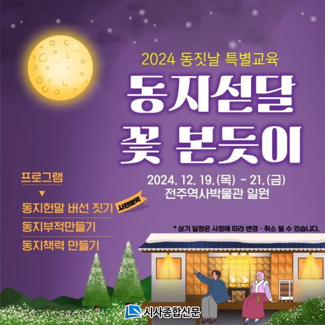 ÀüÁÖ¿ª»ç¹Ú¹°°üÀº ¿À´Â 19ÀϺÎÅÍ 21ÀϱîÁö µ¿Áö¸¦ ¸Â¾Æ ¡®µ¿Áö¼²´Þ ²É º» µíÀÌ¡¯ Çà»ç¸¦ ¿î¿µÇÑ´Ù°í 6ÀÏ ¹àÇû´Ù.