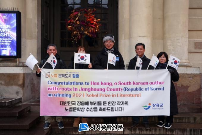 8ÀÏ ½º¿þµ§ ½ºÅåȦ¸§¿¡ µµÂøÇÑ ÃàÇÏ»çÀý´ÜÀº ³ëº§¹Ú¹°°ü ¾Õ¿¡¼ ÇѰ ÀÛ°¡ÀÇ ³ëº§¹®Çлó ¼ö»óÀ» ÃàÇÏÇÏ´Â Ç÷¡Ä«µå¸¦ °É¾î ÇöÁö ½Ã¹ÎµéÀÇ °ü½ÉÀ» ¹Þ¾Ò´Ù. 9ÀÏ¿¡´Â ÁÖ ½º¿þµ§ Çѱ¹ ´ë»ç°üÀ» ¹æ¹®ÇÏ¿© ´ë»ç¸¦ ¸é´ãÇϰí, Çѱ¹¹®È¿øÀ» ¹æ¹®ÇØ ¹®È Çù·Â ¹æ¾È µîÀ» ³íÀÇÇß´Ù.