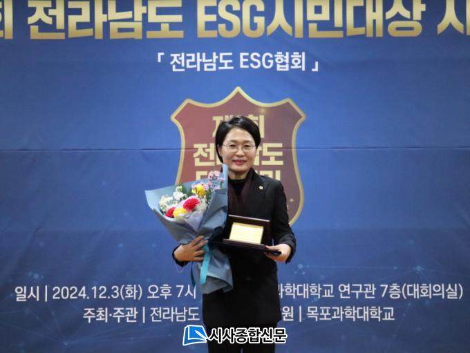 | ¿©¼ö½ÃÀÇȸ ¹Î´öÈñ ÀÇ¿ø, Àü¶ó³²µµ ESGÇùȸ ½Ã¹Î ´ë»ó ¼ö»ó |