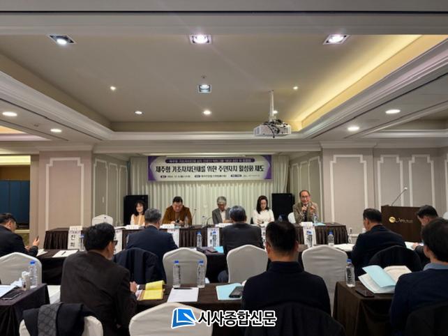 ÃÖÁö¹Î Çѱ¹Áö¹æÇàÁ¤¿¬±¸¿ø ºÎ¿¬±¸À§¿øÀº Çö ÁÖ¹ÎÀÚġȸÀÇ ½ÇÅÂÁ¶»ç °á°ú¸¦ °øÀ¯Çϰí,¡°ÁÖ¹ÎÀÚġȸÀÇ ¿øÈ°ÇÑ ¿î¿µÀ» À§ÇØ ±âÃÊÀÇȸ¿Í ÁÖ¹ÎÀÚġȸ¿ÍÀÇ °ü°è, Ÿ ÁÖ¹ÎÁ¶Á÷°ú ÁÖ¹ÎÀÚġȸ °£ °¥µî °ü°è¿¡ ´ëÇÑ ¼¼¹ÐÇÑ °ËÅä°¡ ÇÊ¿äÇÏ´Ù¡±°í ¼³¸íÇß´Ù.