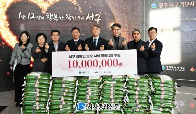 [½Ã»çÁ¾ÇսŹ® = ¿À½ÂÅà ±âÀÚ] ±èÀ̰ ±¤ÁÖ ¼±¸Ã»ÀåÀº 10ÀÏ ±â¾Æ ±¤ÁÖÀü³²Áö¿ªº»ºÎ(º»ºÎÀå Á¤±æ¼ö)¿Í ±¤Áֽż¼°è(´ëÇ¥ À̵¿ÈÆ)·ÎºÎÅÍ Àå¾ÖÀÎ º¸È£ ½Ã¼³ Áö¿øÀ» À§ÇÑ ¹é¹Ì10kg 434Æ÷(1õ¸¸¿ø »ó´ç)¸¦ Àü´Þ¹Þ°í °¨»çÀÇ ¸¶À½À» ÀüÇß´Ù.