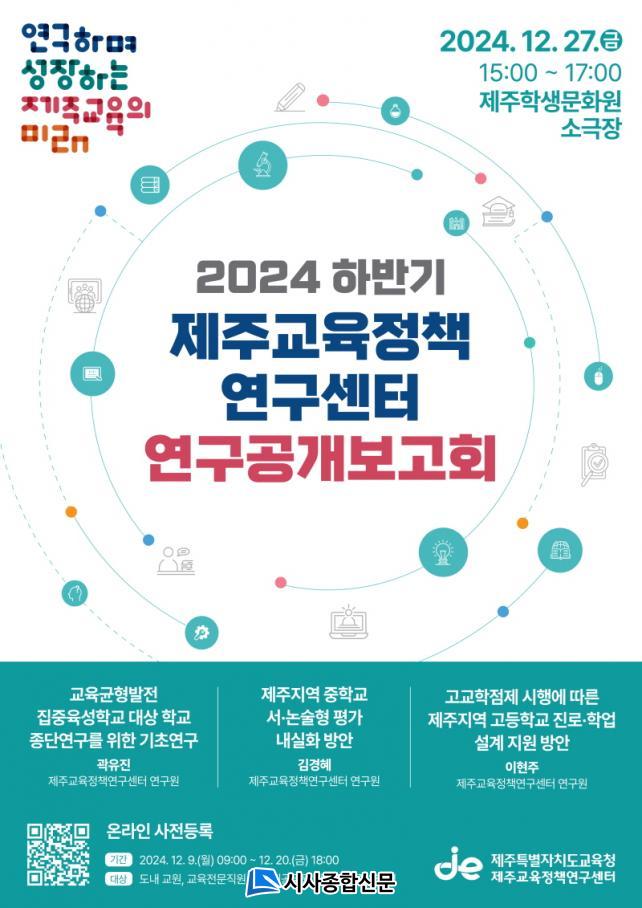 [½Ã»çÁ¾ÇսŹ® = °í¼º¹Î ±âÀÚ] Á¦ÁÖÆ¯º°ÀÚÄ¡µµ±³À°Ã»(±³À°°¨ ±è±¤¼ö) Á¦ÁÖ±³À°Á¤Ã¥¿¬±¸¼¾ÅÍ´Â ¿À´Â 27ÀÏ Á¦ÁÖÇлý¹®È¿ø ¼Ò±ØÀå¿¡¼ Á¦ÁÖ±³À°Á¤Ã¥¿¬±¸¼¾ÅÍ 2024 ÇϹݱ⠿¬±¸°ø°³ º¸°íȸ¸¦ °³ÃÖÇÑ´Ù.