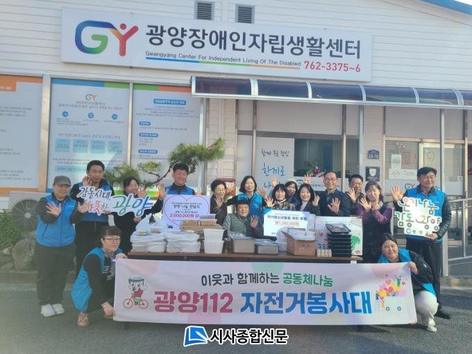 À̹ø ÈÄ¿ø»ç¾÷Àº 112ÀÚÀü°ÅºÀ»ç´ë°¡ Áö³ 10¿ù ±¤¾çÀüÅ뽡ºÒ±¸ÀÌÃàÁ¦¿¡¼ ź¼ÒÁ߸³½Çõ ÆÇ¸Å(ÀÚ¿ø¼øÈ¯: Çå¿Ê ¿Ü ¸ðµç ÀçȰ¿ëǰ)·Î ¸¶·ÃµÈ ±â±Ý¼öÀÍ±Ý 3¹é¸¸¿øÀ» 3°³¼Ò º¹Áö½Ã¼³(±¤¾çÀå¾ÖÀÎÀÚ¸³¼¾ÅÍ, ±¤¾çÀå¾ÖÀÎÆò»ý±³À°¿ø, ±¤¾çYMCAû¼Ò³âÀαǼ¾ÅÍ)¿¡ ÃÑ 6ȸ(24.12¿ù~25.5¿ù)¿¡ °ÉÃÄ ¹Ø¹ÝÂùÀ» Á÷Á¢ Á¶¸®¡¤¹è½Ä¡¤¹è´Þ±îÁö ÃßÁøÇϰí, ´çÀÏ Çб³¹Û À§±âû¼Ò³â Áö¿øÀ» À§ÇØ 1¹é¸¸À» YMCA û¼Ò³â ÀαǼ¾ÅÍ¿¡ ´ë¿øµéÀÌ ½Ê½ÃÀÏ¹Ý ¸ð±ÝÇÑ ÈÄ¿ø±ÝÀ» Ãß°¡·Î Àü´ÞÇß´Ù.