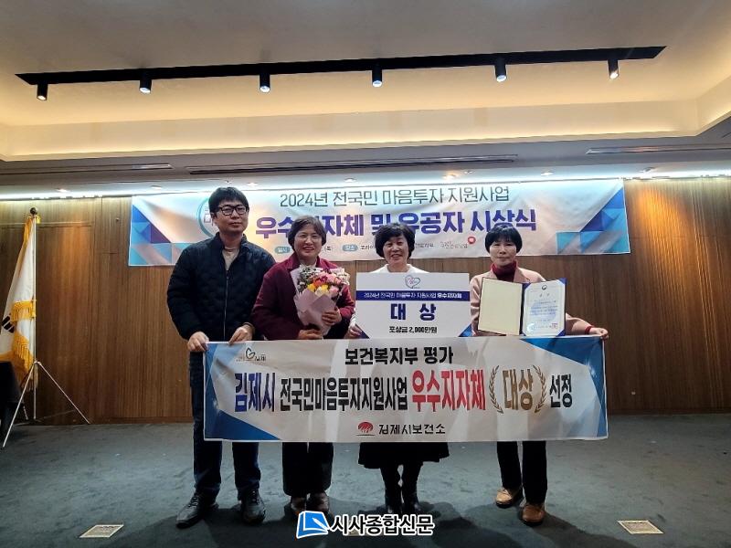 Á¤¼ºÁÖ ±èÁ¦½ÃÀåÀº ¡°À̹ø ¼ö»óÀº Á¤½Å°Ç° ¼ºñ½ºÀÇ Á¢±Ù¼ºÀ» ³ôÀÌ°í ½Ã¹ÎµéÀÇ Á¤½Å°Ç° ÁõÁøÀ» À§ÇØ ´Ù¾çÇÑ Áö¿ø»ç¾÷À» ¹ß±¼Çϰí ÃßÁøÇØ ¿Â °á°ú¡±¶ó¸ç, ¡°¾ÕÀ¸·Îµµ ½Ã¹Î ¸ðµÎ°¡ °Ç°Çϰí ÇູÇÑ ±èÁ¦½Ã¸¦ ¸¸µé±â À§ÇØ ÃÖ¼±À» ´ÙÇϰڴ١±¶ó°í ¸»Çß´Ù.