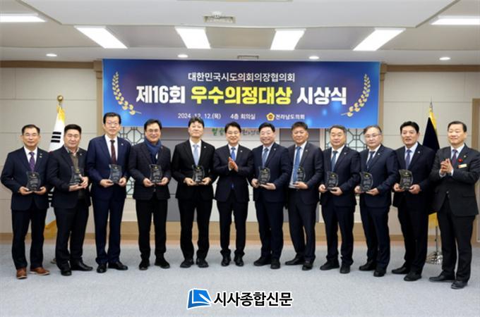 [½Ã»çÁ¾ÇսŹ® = ¿À½ÂÅà ±âÀÚ] Àü¶ó³²µµÀÇȸ(ÀÇÀå ±èűÕ)´Â 12¿ù 12ÀÏ, µµÀÇȸ ȸÀǽǿ¡¼ ´ëÇѹα¹½ÃµµÀÇȸÀÇÀåÇùÀÇȸ ÁÖ°ü ¡®Á¦16ȸ ¿ì¼öÀÇÁ¤´ë»ó¡¯À» ¼ö»óÇÑ µµÀÇ¿ø 12¸í¿¡°Ô »óÆÐ¸¦ Àü¼öÇß´Ù.