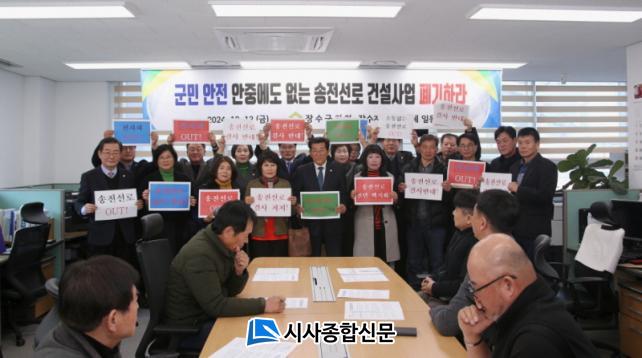 À̳¯ ¿ÀÀü, Àå¼ö±ºÀÇȸ ÀÇ¿øµéÀº ±âÀÚȸ°ß¿¡ ¾Õ¼ Àå¼ö±ºÀÚÀ²¹æ¹ü¿¬ÇÕȸ µî Àå¼öÁö¿ª»çȸ´Üü¿Í °£´ãȸ¸¦ °³ÃÖÇϰí, ±º¹ÎµéÀÇ ¾ÈÀü°ú ȯ°æÀ» À§ÇùÇϸç Áö¿ª°æÁ¦¿¡ ¾Ç¿µÇâÀ» ¹ÌÄ¡´Â ¼ÛÀü¼±·Î µî Àü·Â¼³ºñ °Ç¼³ »ç¾÷Àº Æó±âµÇ¾î¾ß ÇÑ´Ù´Â µ¥ ¶æÀ» ÇÔ²²Çß´Ù. ÀÌ ÀÚ¸®¿¡¼ Âü¼®ÀÚµéÀº Àå¼ö±º ¼ÛÀü¼±·Î °Ç¼³»ç¾÷ ¹Ý´ë ƯÀ§(°¡Äª)¸¦ ±¸¼ºÇϰí, À§¿øÀåÀ¸·Î Àå¼ö±ºÀÇȸ ±è³²¼ö ÀÇ¿øÀ» ¼±ÃâÇß´Ù.