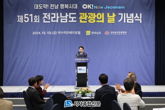 [½Ã»çÁ¾ÇսŹ® = ¿À½ÂÅà ±âÀÚ] Àü³²µµÀÇȸ ±èÅÂ±Õ ÀÇÀåÀº 12¿ù 13ÀÏ ¿ÀÀü 11½Ã ¿©¼ö È÷µçº£ÀÌÈ£ÅÚ¿¡¼ °³ÃÖµÈ ¡®2024³â Á¦51ȸ °ü±¤ÀÇ ³¯ ±â³ä½Ä¡¯¿¡ Âü¼®ÇØ ¡°Àü³²ÀÇ ¸À°ú ¸ÚÀ» ³Î¸® ¾Ë·Á °ü±¤»ê¾÷ ¹ßÀüÀº ¹°·Ð Àü³²¹ßÀüÀ» À̲ø¾î ´Þ¶ó¡±°í ´çºÎÇß´Ù.