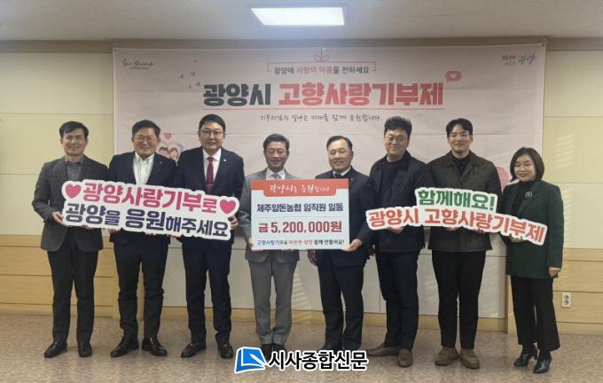 [½Ã»çÁ¾ÇսŹ® = ¿À½ÂÅà ±âÀÚ] ±¤¾ç»ó°øÈ¸ÀǼÒ(ȸÀå ¿ì±¤ÀÏ)´Â 12¿ù 16ÀÏ(¿ù) Á¦Á־絷³óÇù °í±ÇÁø Á¶ÇÕÀåÀÌ ±¤¾ç½ÃûÀ» ¹æ¹®ÇØ °íÇâ»ç¶û ±âºÎ±Ý 520¸¸¿øÀ» Àü´ÞÇÏ¿´´Ù°í ¹àÇû´Ù.