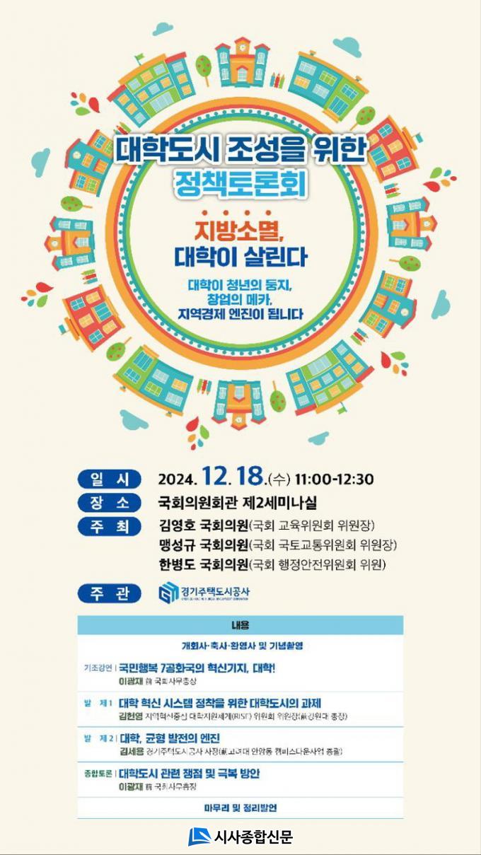 | ÇѺ´µµ ÀÇ¿ø, Áö¹æ¼Ò¸ê ´ëÀÀ À§ÇØ ¡®´ëÇеµ½Ã¡¯ Á¶¼º ³íÀÇ ³ª¼±´Ù ±è¿µÈ£ ±³À°À§¿øÈ¸ À§¿øÀå, ¸Í¼º±Ô ±¹Åä±³ÅëÀ§¿øÈ¸ À§¿øÀå°ú ¡®´ëÇеµ½Ã Á¶¼º Á¤Ã¥Åä·Ðȸ¡¯ °øµ¿ÁÖÃÖ