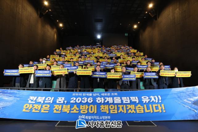 Çà»ç¿¡ ¾Õ¼ ¼Ò¹æº»ºÎ´Â 2036 ¿Ã¸²ÇÈ À¯Ä¡¸¦ ±â¿øÇÏ´Â ¿µ»óÀ» ½ÃûÇϰí, ¡®ÇѰ踦 ³ÑÀº »õ·Î¿î ½Ãµµ, 2036 Çϰè¿Ã¸²ÇÈ ÀüºÏ À¯Ä¡ ±â¿ø¡¯ ¹®±¸°¡ ´ã±ä ¼ÕÇÇÄÏÀ» µé°í ÆÛÆ÷¸Õ½º¸¦ ÆîÃÆ´Ù.
