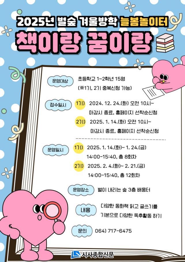 ÀÌ¿¡ ÈûÀÔ¾î À̹ø °Ü¿ï¹æÇп¡´Â ±âÁ¸ ÇÁ·Î±×·¥¿¡ º¯È¸¦ ÁÖ¾î µ¶¼¿Í Ã¥ Áß½ÉÀÇ È°µ¿À» ±â¹ÝÀ¸·Î ÇÑ¡®Ã¥À̶û ²ÞÀ̶û¡¯ ÇÁ·Î±×·¥À» ÁøÇàÇÑ´Ù.