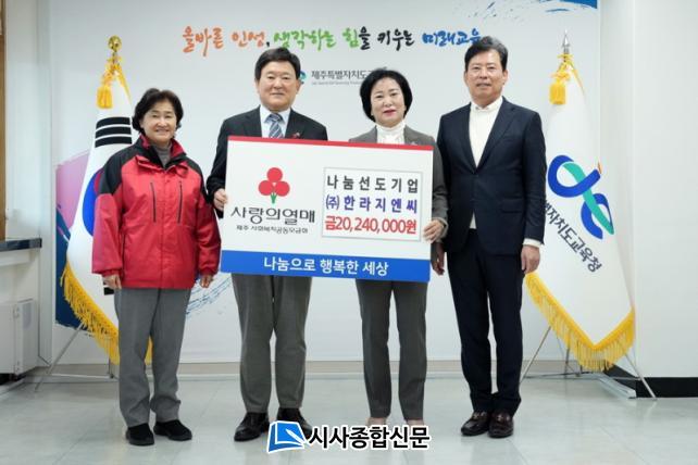 [½Ã»çÁ¾ÇսŹ® = °í¼º¹Î ±âÀÚ] ¢ßÇѶóÁö¿£¾¾(´ëÇ¥ ±è½Å¼º)¿¡¼ Áö³ 17ÀÏ¡®ÀÛÀº »ç¶ûÀÇ ¾¾¾Ñ¡¯¼º±ÝÀ¸·Î Á¦ÁÖÆ¯º°ÀÚÄ¡µµ±³À°Ã»¿¡ 2õ 24¸¸¿øÀ» ±âŹÇß´Ù.