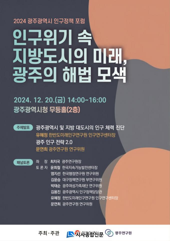 ±¤ÁÖ±¤¿ª½Ã(½ÃÀå °±âÁ¤)´Â ±¤ÁÖ¿¬±¸¿ø°ú ÇÔ²² 20ÀÏ ¿ÀÈÄ 2½Ã ½Ãû ¹«µîȦ¿¡¼ ¡®2024³â ±¤Áֽà Àα¸Á¤Ã¥ Æ÷·³¡¯À» °³ÃÖÇÑ´Ù.