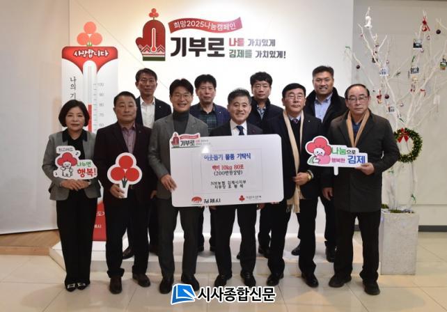 [½Ã»çÁ¾ÇսŹ® = ¿À½ÂÅà ±âÀÚ] ±èÁ¦½Ã(½ÃÀå Á¤¼ºÁÖ)´Â ³óÇù ±èÁ¦½ÃÁöºÎ(ÁöºÎÀå Á¶¿ø¼®)°¡ 20ÀÏ ¿¬¸»À» ¸Â¾Æ Áö¿ª»çȸÀÇ ³ª´® ½Çõ¿¡ ¾ÕÀ弸ç 200¸¸ ¿ø »ó´çÀÇ ¹é¹Ì 80Æ÷¸¦ ±âºÎÇß´Ù°í ¹àÇû´Ù.