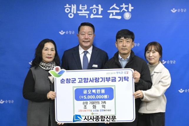 [½Ã»çÁ¾ÇսŹ® = ¿À½ÂÅà ±âÀÚ] ¼øÃ¢±ºÀº ¼øÃ¢ Ãâ½Å Á¶ÈÀÍ ¾¾°¡ °íÇâ»ç¶û±âºÎ±Ý 500¸¸ ¿øÀ» ±âŹÇß´Ù°í 23ÀÏ ¹àÇû´Ù.
