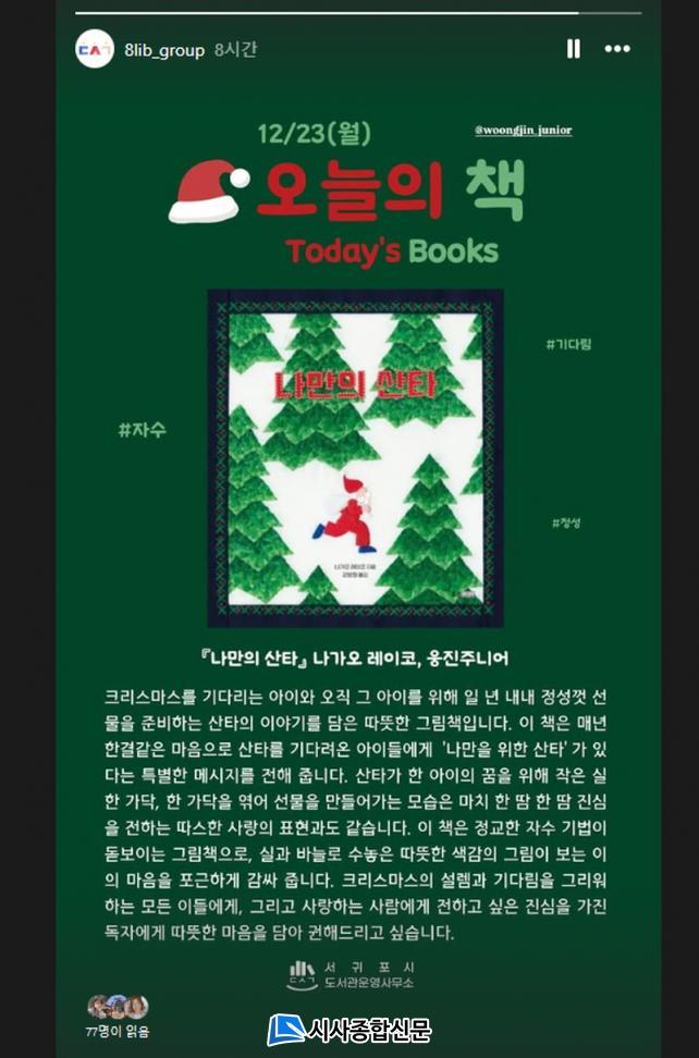 ¡®¸ÅÀϸÅÀÏ Ã¥½ºÅ¸±×·¥¡¯Àº µðÁöÅÐ ½Ã´ë¿¡ ¹ß¸ÂÃç µ¶¼¹®È È®»êÀ» À§ÇØ ±âȹµÇ¾úÀ¸¸ç, ÆòÀÏ ¿ÀÀü 9½Ã¿¡ µµ¼°ü¿î¿µ»ç¹«¼Ò ÀνºÅ¸±×·¥¿¡ 1±ÇÀÇ Ã¥À» ÃßõÇÑ´Ù. 3¿ùºÎÅÍ Áö¼ÓµÈ ÀÌ Ãßõ¼ºñ½º¸¦ ÅëÇØ ÇöÀç±îÁö ÃÑ 200±ÇÀÇ µµ¼¸¦ ÃßõÇß°í, ÃÑ ´©Àû Á¶È¸ÀÚ ¼ö´Â 20,896¸í¿¡ À̸¥´Ù.