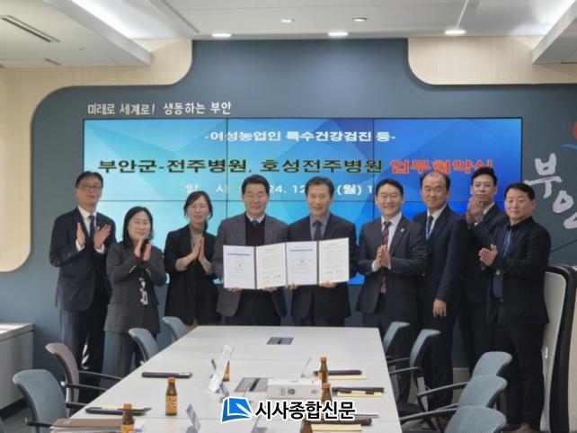 [½Ã»çÁ¾ÇսŹ® = ¿À½ÂÅà ±âÀÚ] ºÎ¾È±º°ú ÀüÁÖº´¿ø‧ È£¼ºÀüÁÖº´¿øÀº Áö³ 23ÀÏ ºÎ¾È±ºÃ» ÁßȸÀǽǿ¡¼ ºÎ¾È±º ¿©¼º³ó¾÷ÀΠƯ¼ö°Ç°°ËÁø, ºÎ¾È±º °ÅÁÖ ¿Ü±¹ÀÎ, ºÎ¾È±º¹Î‧ºÎ¾È±ºÃ» Á÷¿øÀÇ ÀǷἺñ½º µîÀ» À§ÇÑ »óÈ£Çù·Â ¾÷¹«Çù¾àÀ» ü°áÇß´Ù.