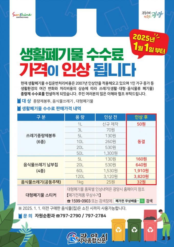 Á¾·®Á¦ ¼ö¼ö·á´Â °¢ Áö¹æÀÚÄ¡´Üüº°·Î °áÁ¤(ÁֹκδãÀ²+Àα٠ÁöÀÚü ¼ö¼ö·á ¿äÀ²) ÇÏ´Â »çÇ×À¸·Î, ±¤¾ç½Ã´Â ¿ÃÇØ 2¿ù 14ÀϺÎÅÍ 6¿ù 28ÀϱîÁö Àü¹® ¿ë¿ª¾÷ü¿¡ ¿ø°¡»êÁ¤ ¿ë¿ªÀ» ÃßÁøÇØ Áö³ 9¿ù 12ÀÏ ±¤¾ç½Ã ¹°°¡´ëÃ¥À§¿øÈ¸ ÀǰáÀ» °ÅÃÄ ¾²·¹±â ¼ö¼ö·á Á¾·®Á¦ Á¶Á¤¾ÈÀ» È®Á¤Çß´Ù.