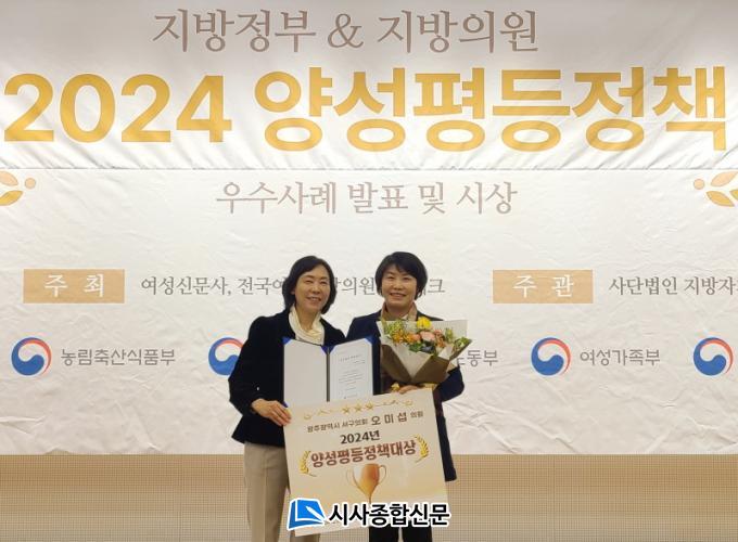 | ±¤ÁÖ ¼±¸ÀÇȸ ¿À¹Ì¼· ÀÇ¿ø, 2024 ¾ç¼ºÆòµîÁ¤Ã¥ ´ë»ó ¼ö»ó ¾ç¼ºÆòµîÁ¤Ã¥ ¼ö¸³ ¹× Ȱ¼ºÈ ÃßÁø