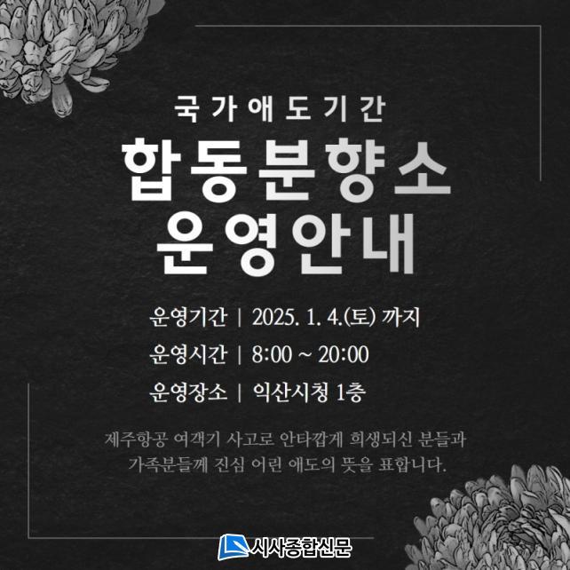 | ÀÍ»ê½Ã, ½Ã¹Î ¾Öµµ À§ÇÑ ÇÕµ¿ºÐÇâ¼Ò ¿î¿µ ±¹°¡¾Öµµ±â°£ÀÎ 1¿ù 4ÀϱîÁö¡¦¿ÀÀü 8½Ã~¿ÀÈÄ 8½Ã, ½Ãû»ç 1Ãþ¿¡ Ãß¸ð °ø°£ ¸¶·Ã¡¦´©±¸³ª ¹æ¹® °¡´É |