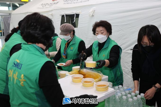 ¹«¾È½ºÆ÷Ã÷ÆÄÅ©¿¡ ¸¶·ÃµÈ ÇÕµ¿ºÐÇâ¼Ò¿¡¼ ¼³Ä¡ ù³¯ÀÎ 30ÀÏ¿¡ 2,295¸íÀÇ Ã߸ð°´ÀÌ ¹æ¹®ÇÏ¿© Èñ»ýÀÚµéÀ» À§·ÎÇß´Ù. ƯÈ÷, Áö¿ª»çȸµµ ÈûÀ» ¸ð¾Æ À¯°¡Á· Áö¿ø¿¡ ³ª¼°í ÀÖ´Ù. 30ÀÏ ±âÁØ 15°³ ±â°ü¡¤´Üü¿¡¼ À½·á, °£½Ä µî ¹°Ç°À» Àü´ÞÇß°í ÀÚ¿øºÀ»ç¿¡ 465¸íÀÌ Âü¿©ÇØ À¯°¡Á· À§·Î¿Í Ã߸𰴠¾È³», ½Ä»ç´ëÁ¢ µî ´Ù¾çÇÑ ¹æ¹ýÀ¸·Î ½½ÇÄÀ» ÇÔ²² ³ª´³´Ù.