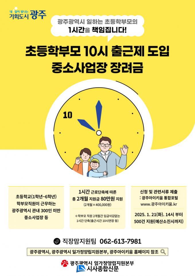±¤ÁÖ±¤¿ª½Ã(½ÃÀå °±âÁ¤)´Â ¡®Áö°¢Àå·Á±Ý¡¯À¸·Î ºÒ¸®¸ç Ã⡤Åð±Ù ½Ã°£À» 1½Ã°£ Á¶Á¤ÇÒ ¼ö ÀÖ´Â ¡®ÃʵîÇкθð 10½Ã Ãâ±ÙÁ¦¡¯¿¡ Âü¿©ÇÒ »ç¾÷ÀåÀ» ¸ðÁýÇÑ´Ù.