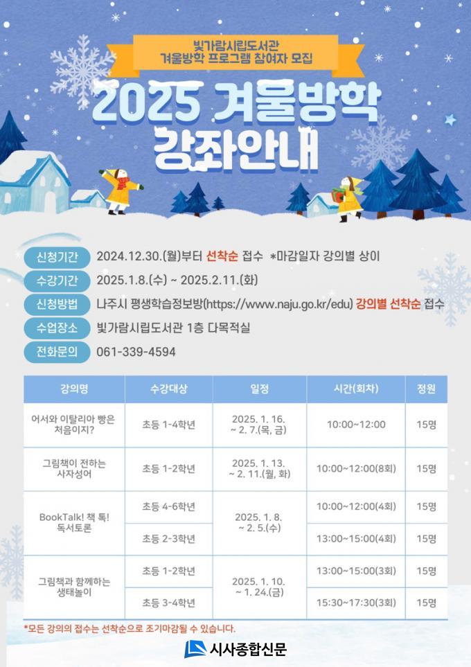 ³ªÁÖ½Ã(½ÃÀå À±º´ÅÂ)´Â 1¿ù 8ÀϺÎÅÍ 2¿ù 11ÀϱîÁö ¡®2025³â °Ü¿ï¹æÇÐ ÇÁ·Î±×·¥¡¯¿¡¼ 4°³ °Á¸¦ ¿î¿µÇÑ´Ù°í 6ÀÏ ¹àÇû´Ù.