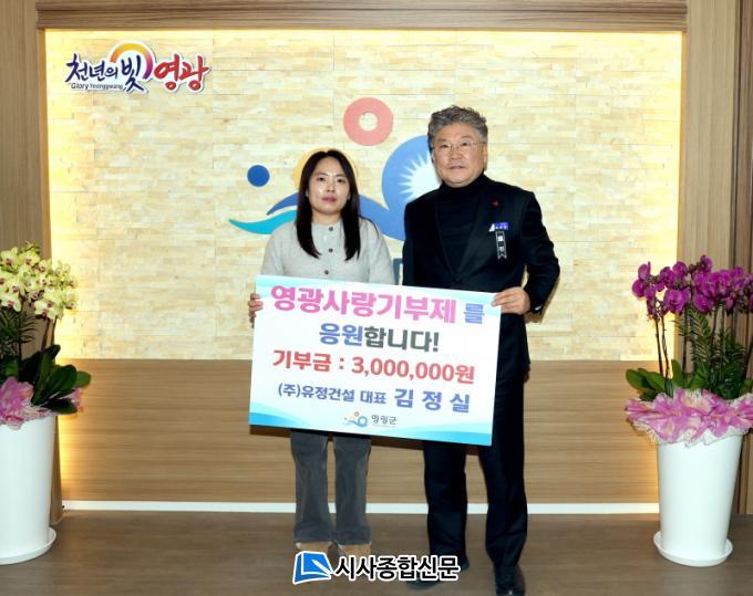 [½Ã»çÁ¾ÇսŹ® = ¿À½ÂÅà ±âÀÚ] ÁÖ½Äȸ»ç À¯Á¤°Ç¼³ ±èÁ¤½Ç ´ëÇ¥°¡ Áö³ 6ÀÏ ¿µ±¤±ºÀ» ¹æ¹®ÇÏ¿© °íÇâ»ç¶û±âºÎ±Ý 3¹é¸¸ ¿øÀ» ±âŹÇß´Ù.
