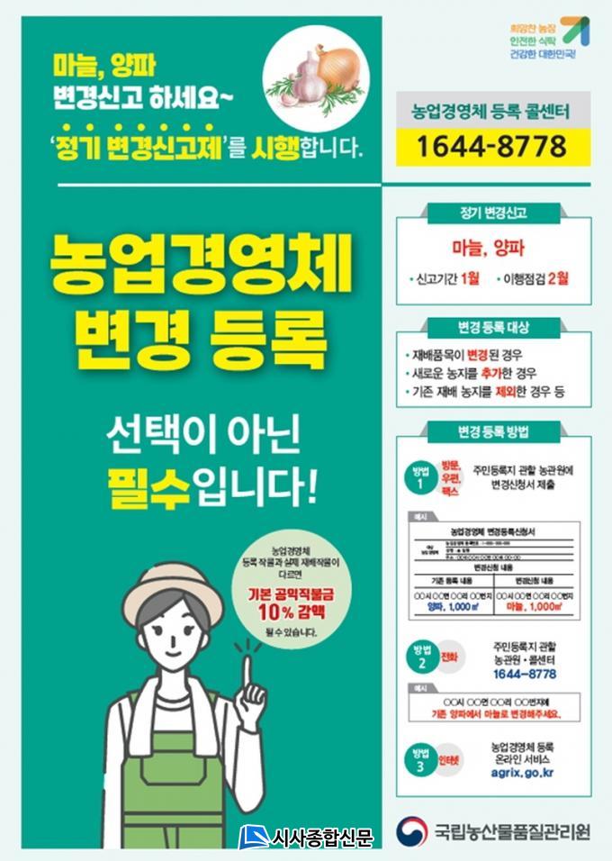 ¹«¾È³ó°ü¿ø ÃÖ¹®È£ ¼ÒÀåÀº ¡°³ó¾÷°æ¿µÃ¼ µî·ÏÁ¤º¸ÀÇ Á¤È®µµ¸¦ ´õ ³ôÀÌ·Á¸é ³ó¾÷°æ¿µÃ¼ÀÇ ÀÚ¹ßÀûÀÎ º¯°æµî·ÏÀÌ Çʼö¡±¶ó°í °Á¶Çϸé¼, ¡°º»ÀÎÀÇ ³ó¾÷°æ¿µÁ¤º¸°¡ º¯°æµÇ¾úÀ» °æ¿ì¿¡´Â Á¦¶§ º¯°æ»çÇ×À» ½Å°íÇØ ´Þ¶ó¡±°í ´çºÎÇÏ¿´´Ù.