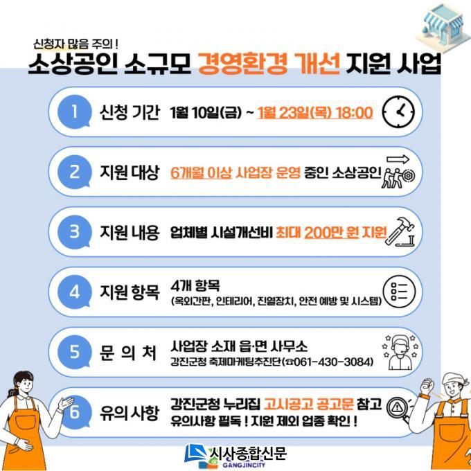 ±âŸ ¹®ÀÇ»çÇ×Àº °Áø±º ¼Ò»ó°øÀÎ ¼Ò±Ô¸ð °æ¿µÈ¯°æ °³¼± Áö¿ø»ç¾÷ ´ã´çÀÚ(¢Ï 061-430-3084)·Î ¹®ÀÇÇÏ¸é µÈ´Ù.
