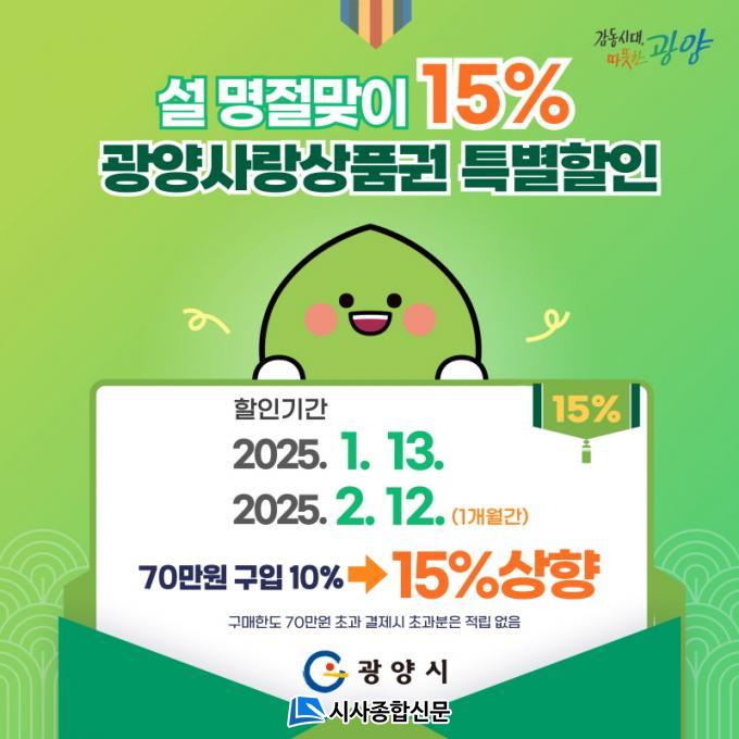 ¼³ ¸íÀý¸ÂÀÌ ¼Òºñ ÁøÀÛ À̺¥Æ® ±â°£¿¡´Â ±¤¾ç»ç¶û»óǰ±Ç ÇÒÀÎÀ²ÀÌ 15%·Î »óÇâ Á¶Á¤µÈ´Ù. À̺¥Æ®´Â 1¿ù 13ÀϺÎÅÍ 2¿ù 12ÀϱîÁö ÇÑ ´Þ µ¿¾È ÁøÇàµÇ¸ç, ÇØ´ç ±â°£ Áß »ç¿ëÇÑ ±Ý¾×À» ÀÌÈÄ Ä³½Ã¹é ¹æ½ÄÀ¸·Î Áö±ÞÇÑ´Ù.