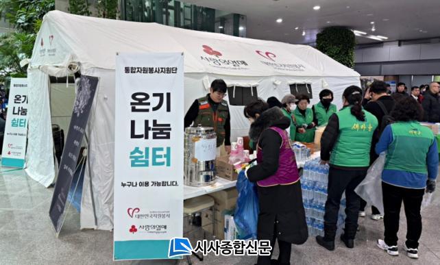 ÀÚ¿øºÀ»ç¼¾ÅÍ´Â »ç°í ¹ß»ý Á÷ÈĺÎÅÍ ¹«¾È°øÇ× ÇöÀå¿¡ ºÎ½º¸¦ ¼³Ä¡ÇØ À¯°¡Á·°ú ±¸È£ Àη 4,000¿© ¸í¿¡°Ô 3Àϰ£ÀÇ µû¶æÇÑ ½Ä»ç¸¦ Á¦°øÇß´Ù. Ãß¿î ³¯¾¾ ¼Ó¿¡¼µµ ÀÚ¿øºÀ»çÀÚµéÀº Çѳ¢ Çѳ¢¿¡ Á¤¼ºÀ» ´ã¾Æ À½½ÄÀ» ÁغñÇϸç, À¯°¡Á·°ú ÇöÀå Àη¿¡°Ô Á¶±ÝÀ̳ª¸¶ À§·Î°¡ µÇ±æ ¹Ù¶ú´Ù.