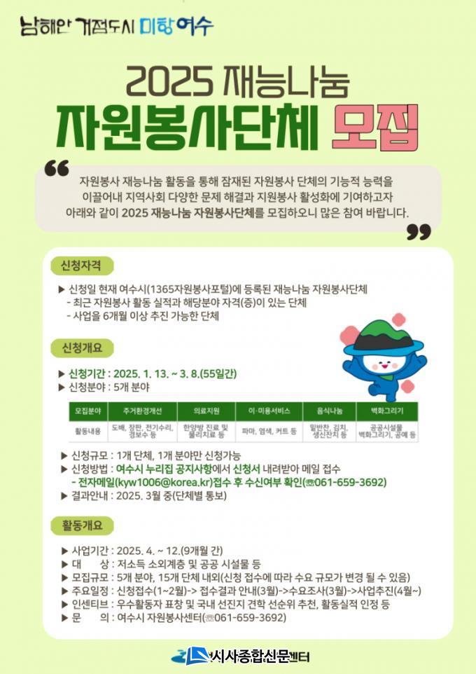 ¸ðÁý ´ë»óÀº ¡ãÁÖ°Åȯ°æ°³¼± ¡ãÀÇ·á‧º¸°Ç ¡ãÀ½½Ä³ª´® ¡ãÀÌ‧¹Ì¿ë ¡ãº®È ±×¸®±â µî 5°³ ºÐ¾ß¿¡ Àç´ÉÀÌ ÀÖ°í 6°³¿ù ÀÌ»ó Ȱµ¿ÀÌ °¡´ÉÇÑ ºÀ»ç´Üü´Ù.