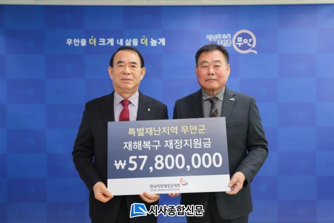 | Çѱ¹Áö¹æÀçÁ¤°øÁ¦È¸, ¹«¾È±º¿¡ ÀçÇØº¹±¸ Áö¿ø±Ý 5,780¸¸¿ø Àü´Þ |