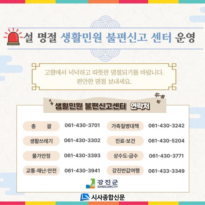 °Áø±ºÀº ¿¬ÈޱⰣÀÎ ¿À´Â 25ÀϺÎÅÍ 30ÀϱîÁö º»Ã», »ç¾÷¼Ò, À¾¡¤¸é¿¡¼ ÃÑ 7°³¹ÝÀ¸·Î Á¾ÇÕ´ëÃ¥¹ÝÀ» ±¸¼ºÇÏ°í »ýȰ¹Î¿ø ºÒÆí½Å°í¼¾Å͸¦ ¿î¿µÇÑ´Ù.