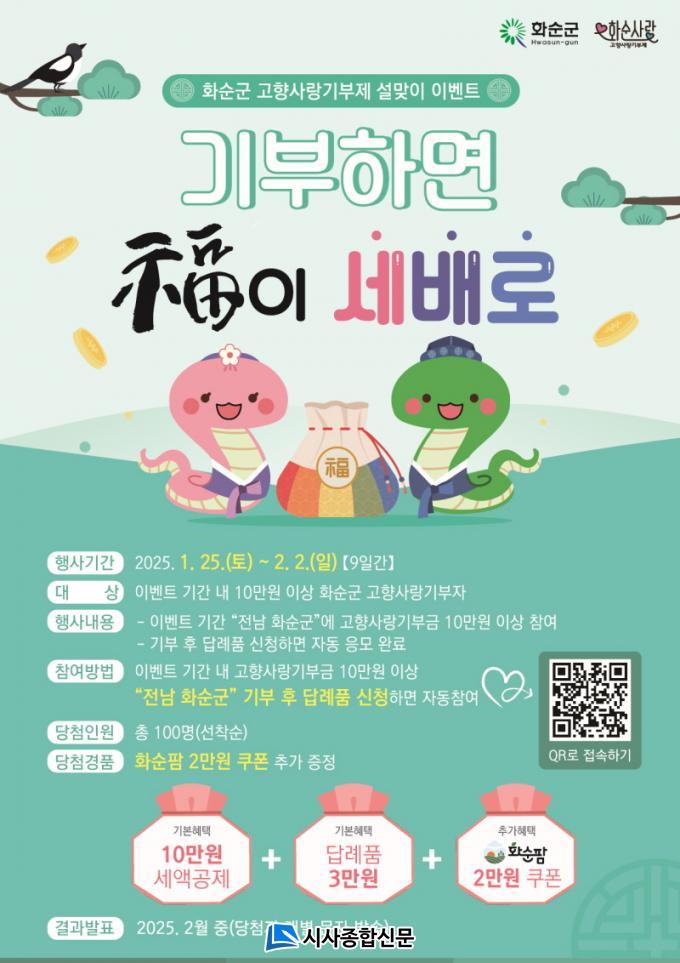 À̺¥Æ® ±â°£ ³» ȼø±º ±âºÎ Âü¿©ÀÚ Áß ¼±Âø¼ø 100¸í¿¡ ´ëÇØ 2¸¸ ¿ø »ó´çÀÇ È¼øÆÊ ÄíÆùÀ» Ãß°¡ ÁõÁ¤ÇÒ ¿¹Á¤À̸ç, ¿Â¶óÀÎ(°íÇâ»ç¶ûeÀ½), ¿ÀÇÁ¶óÀÎ(NH³óÇùÀºÇà)À» ÅëÇØ 10¸¸ ¿ø ÀÌ»ó ±âºÎÇÏ°í ´ä·ÊǰÀ» ÁÖ¹®Çϸé ÀÚµ¿ ÀÀ¸ðµÈ´Ù. ´ç÷ÀÚ ¹ßÇ¥´Â 2¿ù Áß °³º° ¹®ÀÚ¸¦ ÅëÇØ ¾È³»µÉ ¿¹Á¤ÀÌ´Ù.