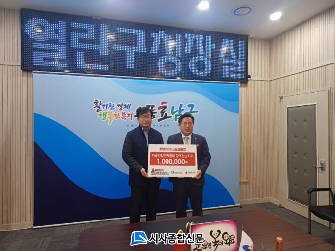 [½Ã»çÁ¾ÇսŹ® = ¿À½ÂÅà ±âÀÚ] Çѱ¹°Ç°°ü¸®Çùȸ ±¤ÁÖÀü³²ÁöºÎ´Â 1¿ù 22ÀÏ(¼ö) ³²±¸Ã»À» ¹æ¹®ÇÏ¿© Ãë¾à°èÃþÀ» À§ÇÑ ¸íÀý »ç¶ûÀÇ ¼º±ÝÀ» Àü´ÞÇß´Ù.
