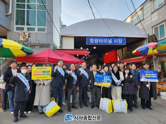 À̹ø ÀüÅë½ÃÀå À庸±â Çà»ç¿¡ Âü¿©ÇÑ 60¿© ¸íÀÇ Á÷¿øµéÀº ¿µ±¤±³À°ÀÇ Åõ¸í¼º°ú ½Å·Ú¼ºÀ» ¾Ë¸®´Â û·Å ¿µ±¤±³À° È«º¸¸¦ ½ÃÀÛÀ¸·Î »çÀü¿¡ ±¸¸ÅÇÑ ¿Â´©¸®»óǰ±Ç°ú ¿µ±¤»ç¶û»óǰ±ÇÀ¸·Î ¿µ±¤Áö¿ªÀÇ ³ó»ê¹°°ú »ýȰ¿ëǰ µîÀ» µÎ ¼Õ °¡µæ ±¸¸ÅÇϸé¼, ¼³À» ¾ÕµÐ ¿µ±¤Å͹̳νÃÀå¿¡ Ȱ·ÂÀ» ´õÇß´Ù.