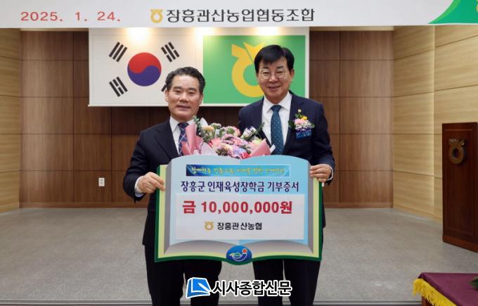 [½Ã»çÁ¾ÇսŹ® = ¿À½ÂÅà ±âÀÚ] (Àç)ÀåÈﱺÀÎÀçÀ°¼ºÀåÇÐȸ(ÀÌ»çÀå ±è¼º)´Â 24ÀÏ ÀåÈï°ü»ê³óÇù(¿ÀÇüÁÖ Á¶ÇÕÀå)¿¡¼ Áö¿ªÀÎÀç À°¼ºÀ» À§ÇØ »ç¿ëÇØ ´Þ¶ó¸ç õ¸¸¿øÀÇ ÀåÇбÝÀ» ±âŹÇß´Ù°í ¹àÇû´Ù.