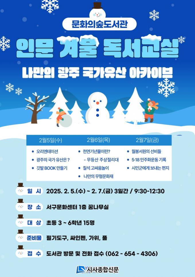 ¹®ÈÀǽ£µµ¼°ü¿¡¼ ÁøÇàÇÏ´Â °Ü¿ï µ¶¼ ±³½ÇÀº ¡®Àι® °Ü¿ï µ¶¼ ±³½Ç : ³ª¸¸ÀÇ ±¤ÁÖ ±¹°¡À¯»ê ¾ÆÄ«À̺ꡯ¶ó´Â ÁÖÁ¦·Î ¿ì¸®°¡ »ç´Â Áö¿ª ±¤ÁÖ¿¡ ¼ÒÀå ÁßÀÎ ±¹°¡À¯»ê¿¡ °üÇØ ޱ¸¿Í Á¤¸®ÇØ º¸´Â ½Ã°£À» °¡Áú ¿¹Á¤ÀÌ´Ù.
