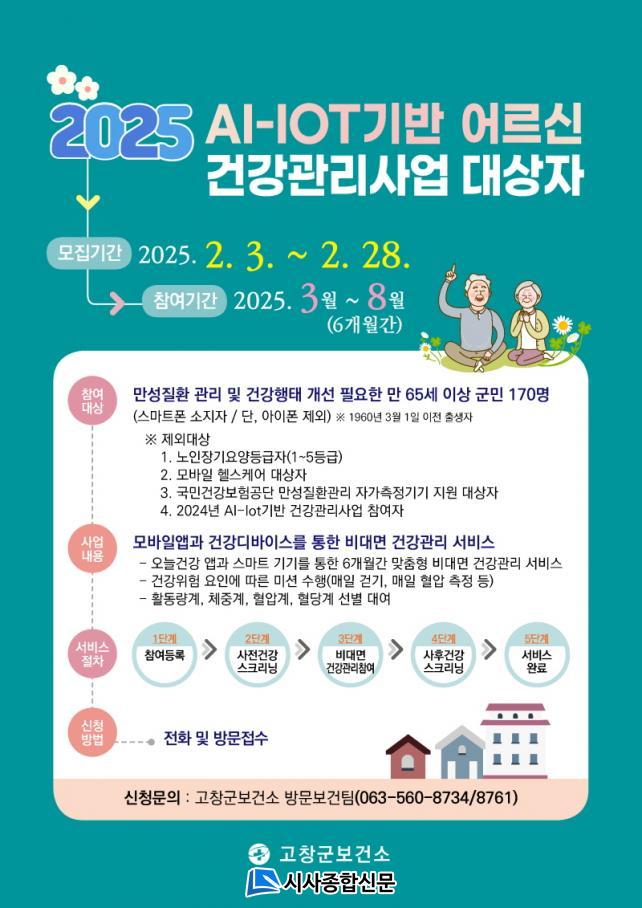 ´ë»óÀÚ´Â 65¼¼ÀÌ»ó °íⱺ¹Î 170¸íÀ¸·Î ½º¸¶Æ®ÆùÀ» ¼ÒÁöÇϰí ÀÖ¾î¾ß ÇÏ¸ç ¼Òµæ±âÁØ¿¡ »ó°ü¾øÀÌ °Ç°ÇàÅ °³¼±ÀÌ ÇÊ¿äÇÑ ±º¹Î ´©±¸³ª ½Åû °¡´ÉÇÏ°í °íⱺº¸°Ç¼Ò ¹æ¹®º¸°ÇÆÀ(¢Ï 560-8761, 8734)À¸·Î ¹æ¹® ¶Ç´Â ÀüÈ ½ÅûÇÏ¸é µÈ´Ù.