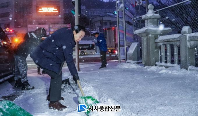 ¶ÇÇÑ Æø¼³·Î ÀÎÇÑ ½Ã¹Î ºÒÆíÀ» ÃÖ¼ÒÈÇϱâ À§ÇØ 4ÀÏ ¿ÀÀü 6½Ã 30ºÐºÎÅÍ Àü Á÷¿øÀ» ºñ»ó ¼ÒÁýÇØ ´ã´ç ±¸¿ªº°·Î ¹èÄ¡Çϰí, Àεµ, ¹ö½º½Â°Àå, Ⱦ´Üº¸µµ µî¿¡ ´ëÇÑ Á¦¼³ÀÛ¾÷À» ½Ç½ÃÇß´Ù.