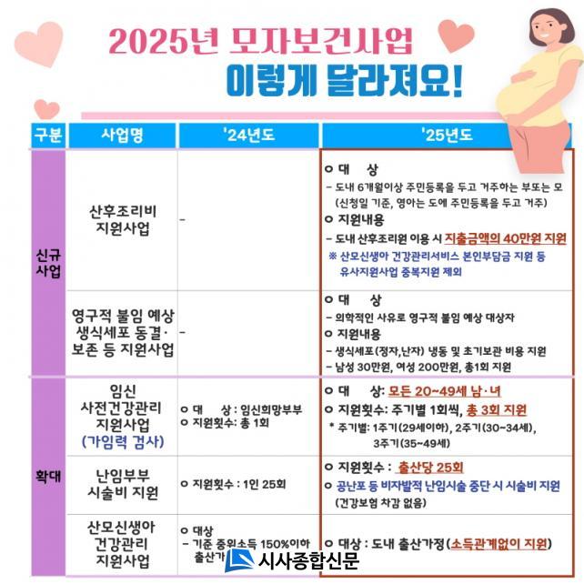¶ÇÇÑ, Àӽš¤Ãâ»ê°úÁ¤¿¡¼ °æÁ¦Àû ºÎ´ã ¿ÏÈ µî Áö¿øÀ» °ÈÇÑ´Ù. °¡ÀÓ·Â °Ë»çºñ Áö¿ø´ë»óÀ» °áÈ¥¿©ºÎ¿Í °ü°è¾øÀÌ 20~49¼¼ ¸ðµç ³²¡¤³à·Î È®´ëµÇ°í Áֱ⺰ 1ȸ¾¿(1ÁÖ±â: 20~29¼¼, 2ÁÖ±â: 30~34¼¼, 3ÁÖ±â 35~49¼¼) ÃÖ´ë 3ȸ±îÁö Áö¿øµÇ¸ç, ³ÀӺκΠ½Ã¼úºñ Áö¿ø»ç¾÷Àº Ãâ»ê´ç 25ȸ(Èñ¸Á½Ã¼ú Áö¿ø)·Î Áö¿øÈ½¼ö¸¦ È®´ëÇÏ°í °ø³Æ÷ µî ºñÀÚ¹ßÀû ³Àӽüú Áß´Ü ½Ã °Ç°º¸Çè Â÷°¨¾øÀÌ Áö¿øµµ °¡´ÉÇØÁø´Ù.